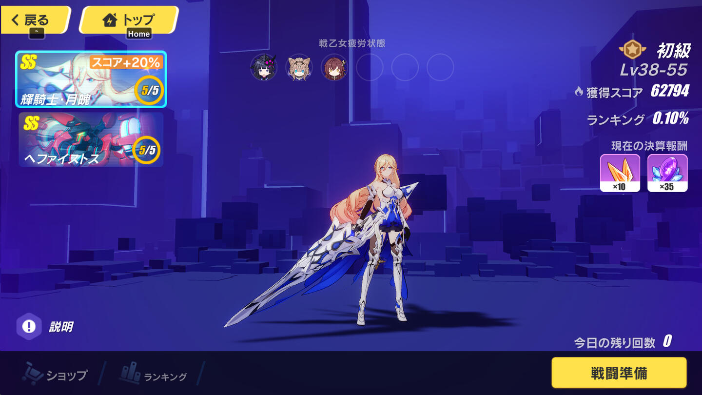 ランキング上位を目指すならアタッカーは各タイプ各元素揃えないといけないし、装備や編成はもちろん、立ち回りや敵の動きの運も関わってくるのでかなり難易度が高いです