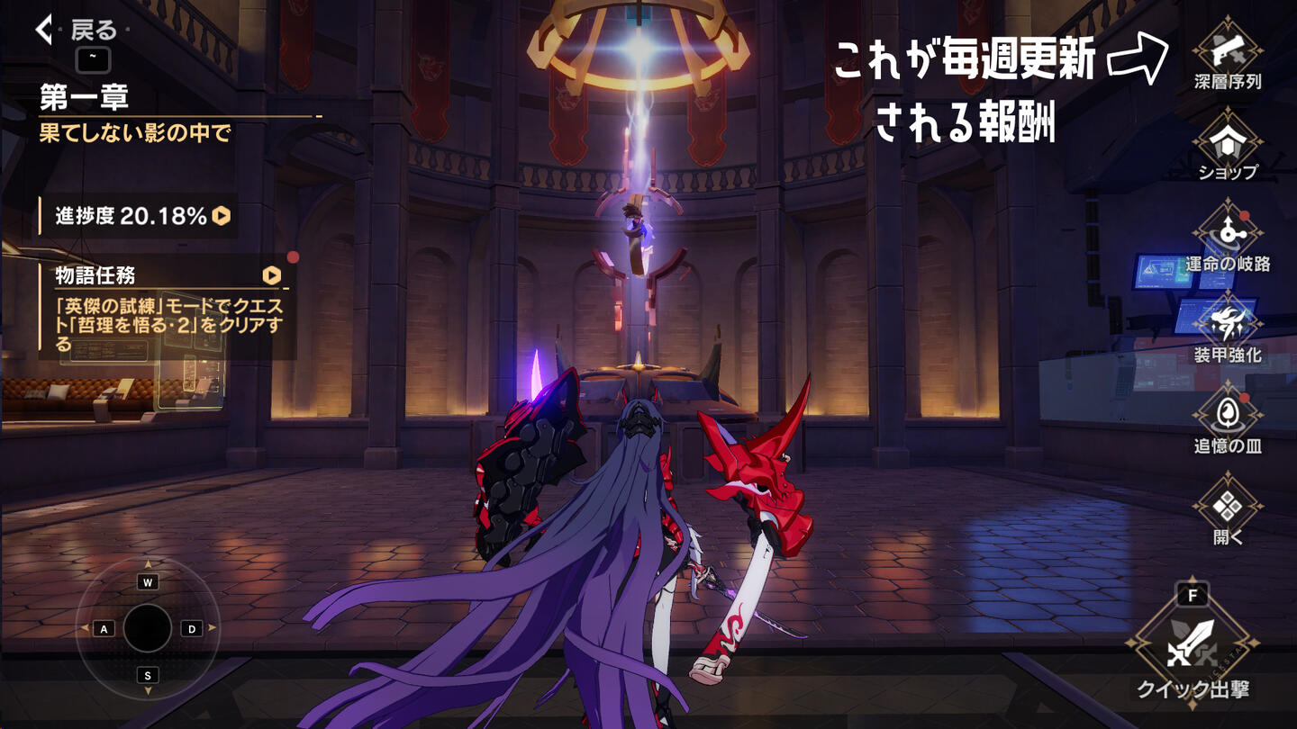 最悪17章あたりまで読んでいればなんとなく雰囲気は掴めると思う単騎攻略クエストなので、微課金無課金でも装備が揃っているキャラが1人いれば報酬全回収はわりと余裕刻印というバフを戦いながら集めてどんどん火力を上げて戦うクエストで、この刻印はキャラによって合う合わないがあったり、当たり外れもある